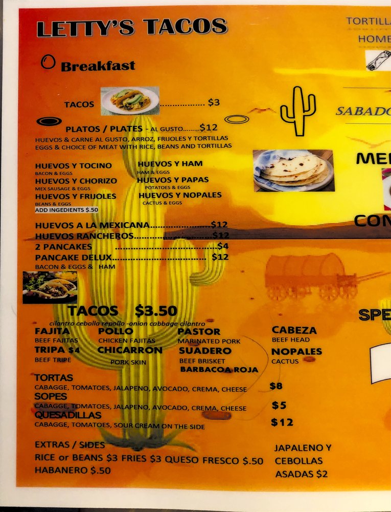 Letty's Tacos, located in Del Valle, Texas, offers a delicious array of authentic Mexican dishes. With rave reviews from customers praising the flavorful food and exceptional service, Letty's Tacos is a hidden gem worth discovering. The menu features a variety of options, including barbacoa tacos, chicken fajitas, al pastor tacos, chicken enchiladas, and more. The restaurant provides a cozy atmosphere with amenities like outdoor seating, free Wi-Fi, and excellent customer service. Whether you're in the mood for a quick bite or a relaxing meal, Letty's Tacos is the perfect place to satisfy your cravings for traditional Mexican cuisine. Don't miss out on trying their mouth-watering dishes that will leave you wanting more. Letty's Tacos is a must-visit for anyone looking for an authentic dining experience in the Austin area.